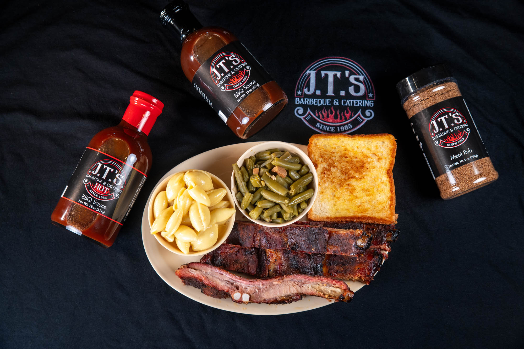 At J.T.'s Barbeque and Catering, we have unique recipes for all our foods, which provides us with a fine selection of meats and sides for every palate. ALL our meat is hand rubbed with our unique seasoning, hickory smoked and slow cooked to perfection by our pit masters. Here at J.T.'s we promise only the most tender ribs and brisket and we guarantee it every time.